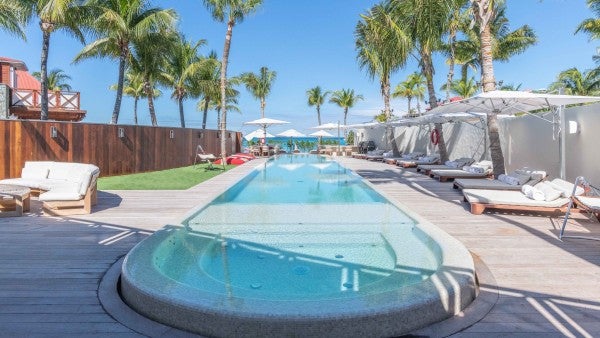 Pad across the powdery white sand for a dip in the ocean. The magnificent living coral reef is an unforgettable snorkelling spot teeming with multi-coloured fish, while gentle waves are perfect for kayaking and stand-up paddleboarding. Eden Rock’s 24/7 concierge can arrange private boat excursions, deep-sea fishing trips and helicopter tours; back on land, take a guided hike through the volcanic landscape or stroll around the charming village of St Jean. Head to island capital Gustavia for luxury tax-free shopping at designer brands like Cartier and Louis Vuitton.